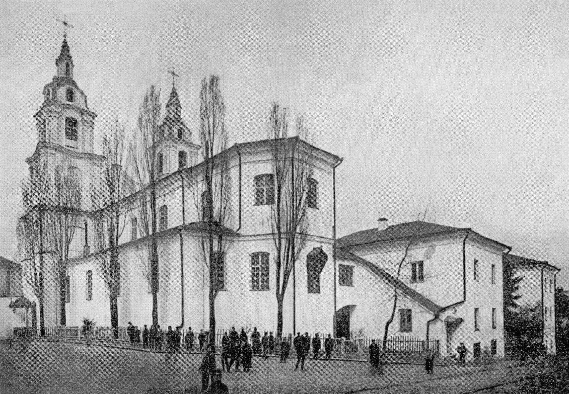 Здание было построено в первой пол. XVII в. как храм католического женского монастыря бернардинок. В 1852 г. монастырь был упразднён и передан православной церкви. В прилегающем двухэтажном корпусе был открыт Свято-Духов монастырь.