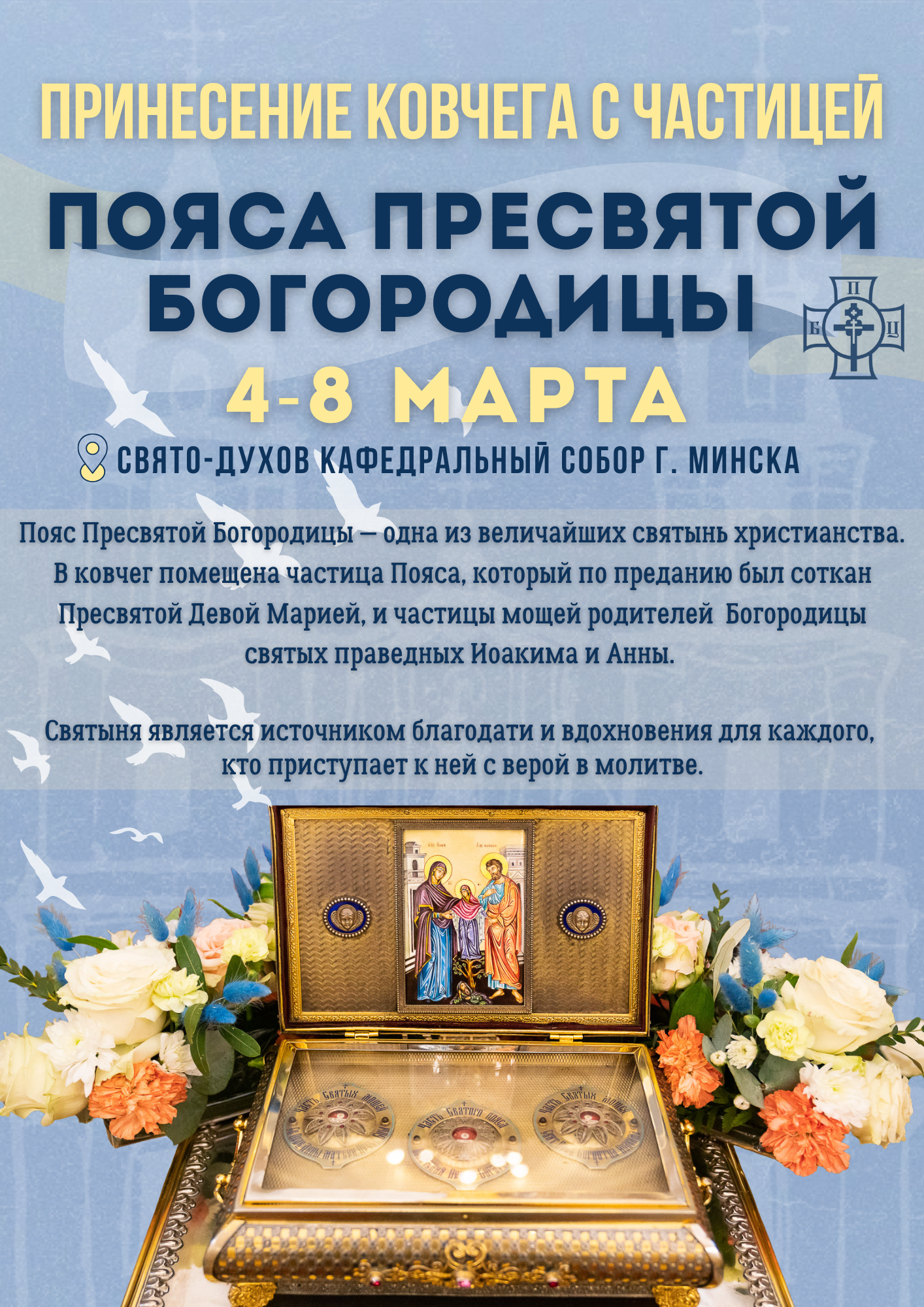 В Свято-Духов кафедральный собор будет принесена великая святыня христианского мира: с 4 по 8 марта верующие смогут поклониться частице Пояса Пресвятой Богородицы