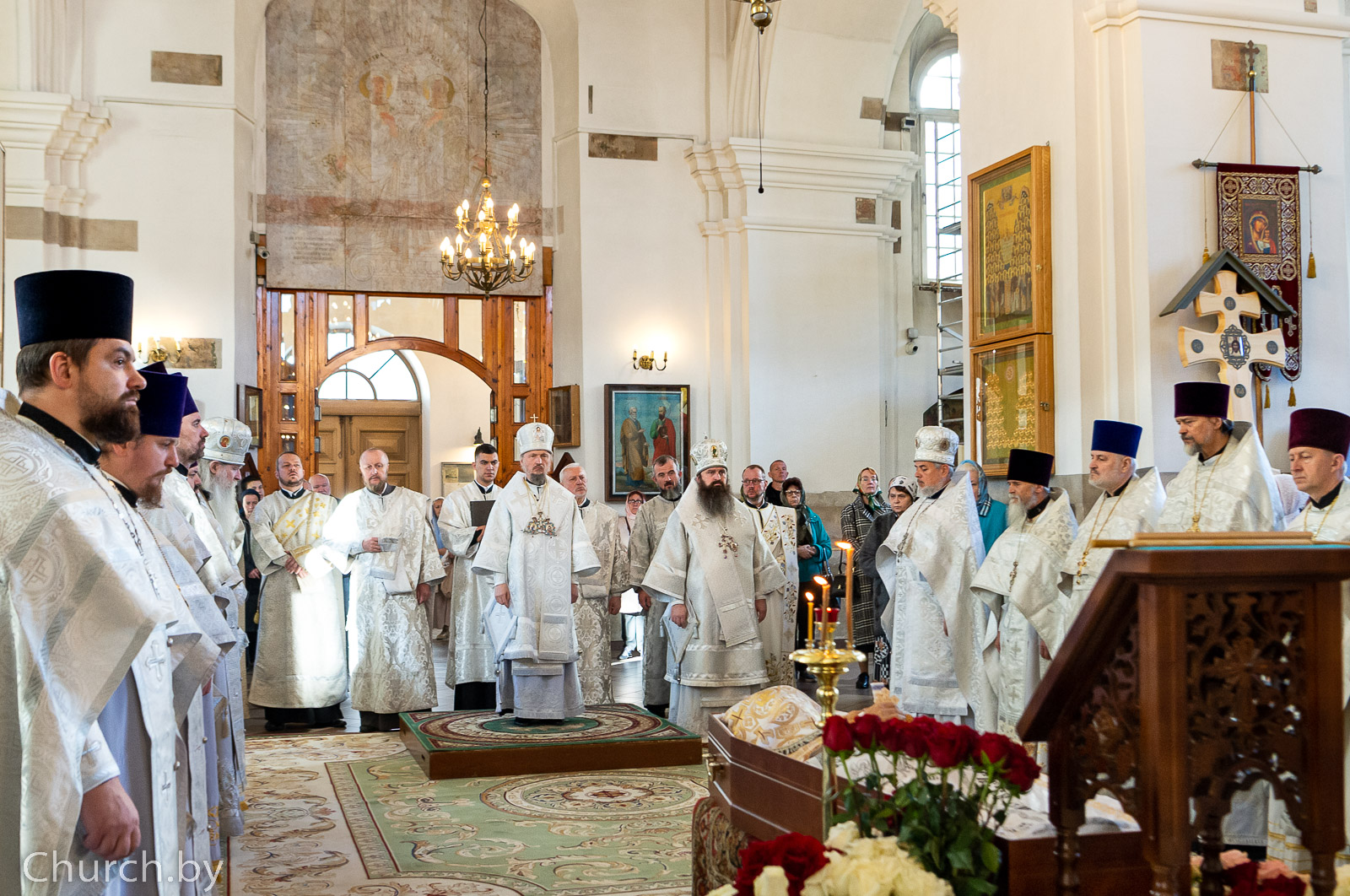 Архипастырям сослужили настоятель Свято-Петро-Павловского собора города Минска протоиерей Георгий Латушко; председатель Синодального отдела Белорусской Православной Церкви по взаимодействию с Вооруженными Силами и другими воинскими формированиями Республики Беларусь, настоятель прихода храма Рождества Пресвятой Богородицы деревни Тарасово Минского района протоиерей Сергий Кузьменков, секретарь Минской епархии протоиерей Андрей Волков, председатель Наградной комиссии Белорусской Православной Церкви, председатель приходского совета Свято-Духова кафедрального собора иерей Дионисий Ковалев ,настоятели храмов и священнослужители Минской епархии, клирики собора.