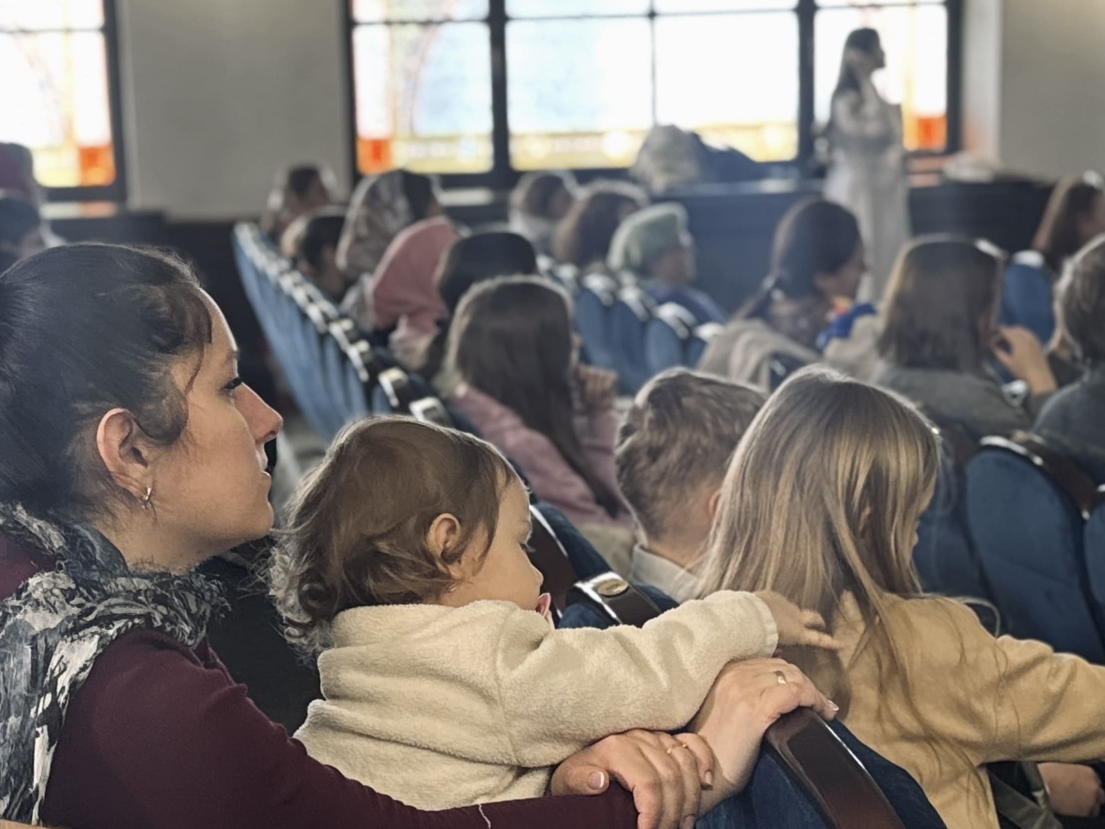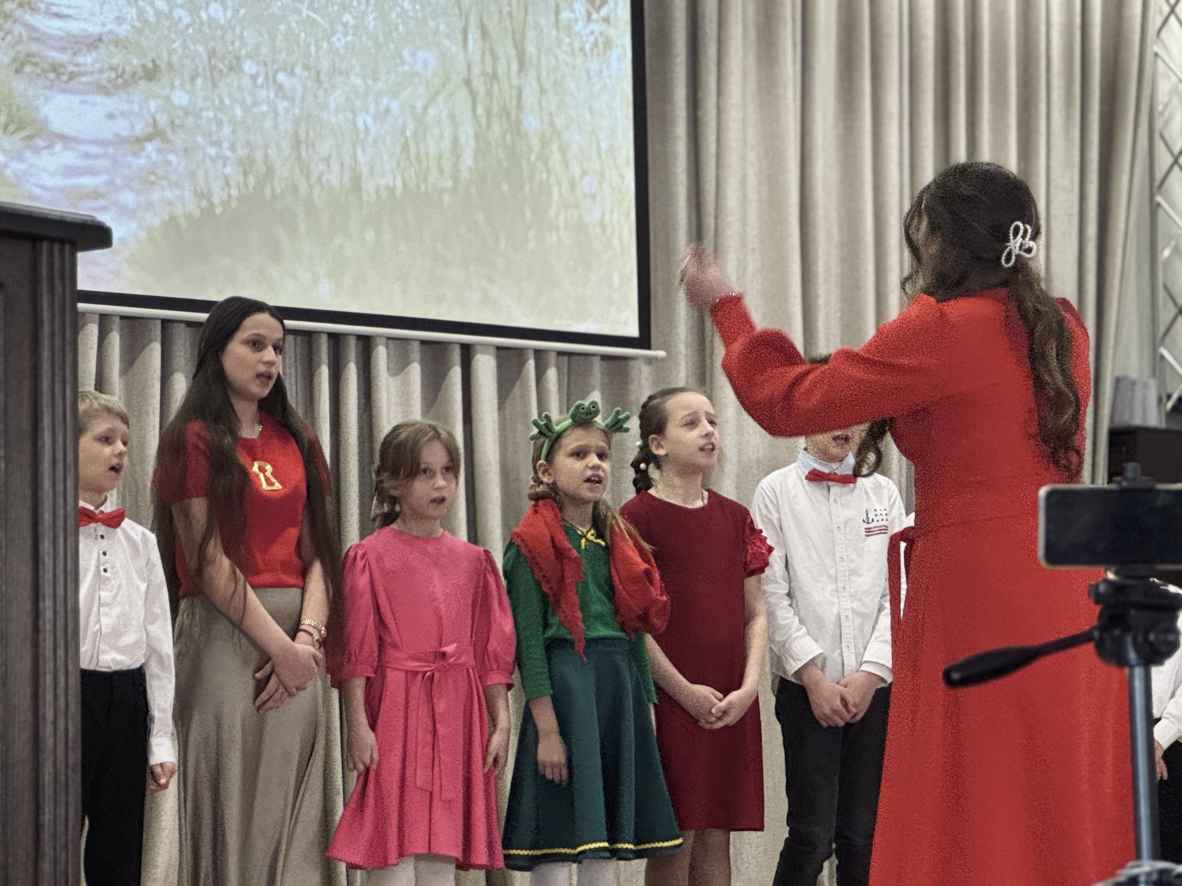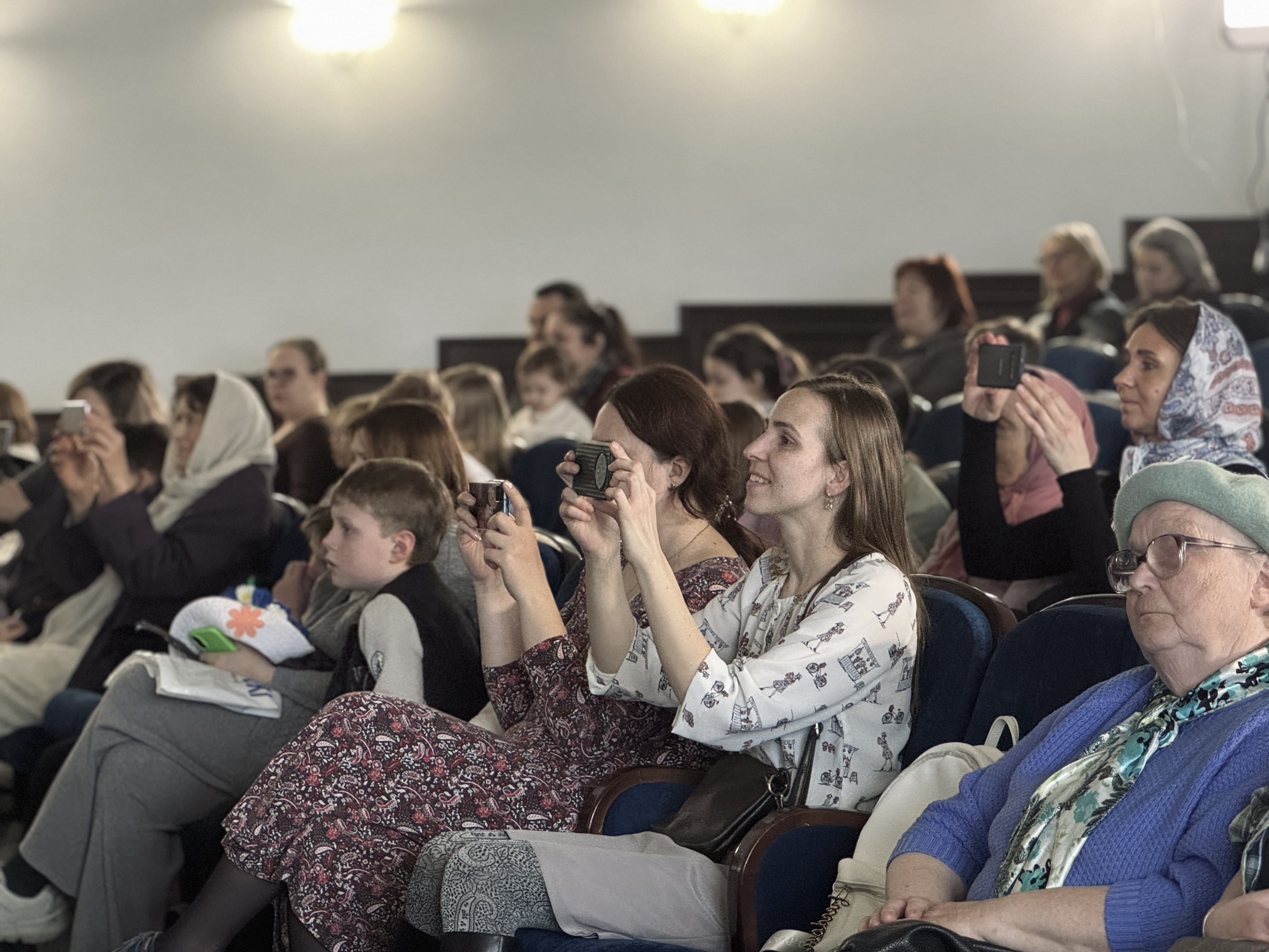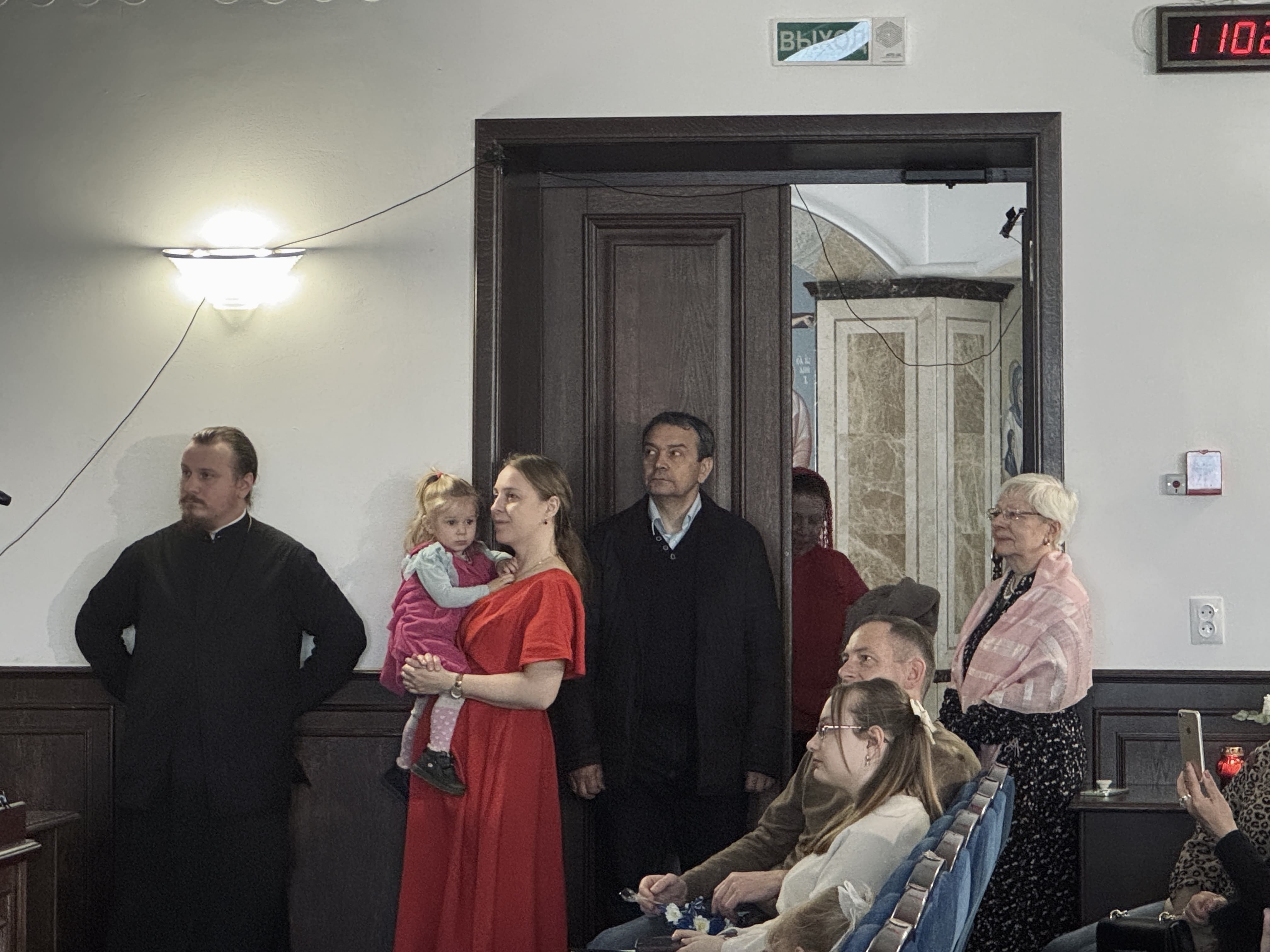 В зале также присутствовали председатель приходского совета собора иерей Дионисий Ковалёв и завуч Воскресной школы Фунтикова Наталья Петровна.
